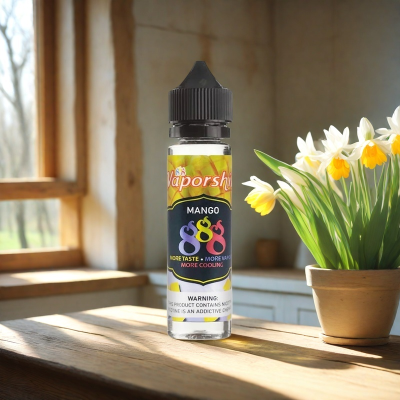 Vaporshill 芒果冰沙 888 系列 60ML 版本專為大煙玩家打造,濃郁的芒果香氣與冰沙涼感在高 VG 配方的加持下更加立體。無論你追求的是濃厚煙霧還是熱帶水果的真實還原,這款人氣王都能一次滿足。
