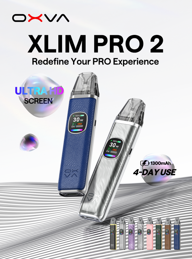 OXVA XLIM PRO 2 小蠻牛升級版,搭載 0.96 吋彩色螢幕與 SMART 調瓦系統,支援 V3 艙與全新 V4 艙,內建 1000mAh 電池與 RGB 燈效,續航與風味雙進化。