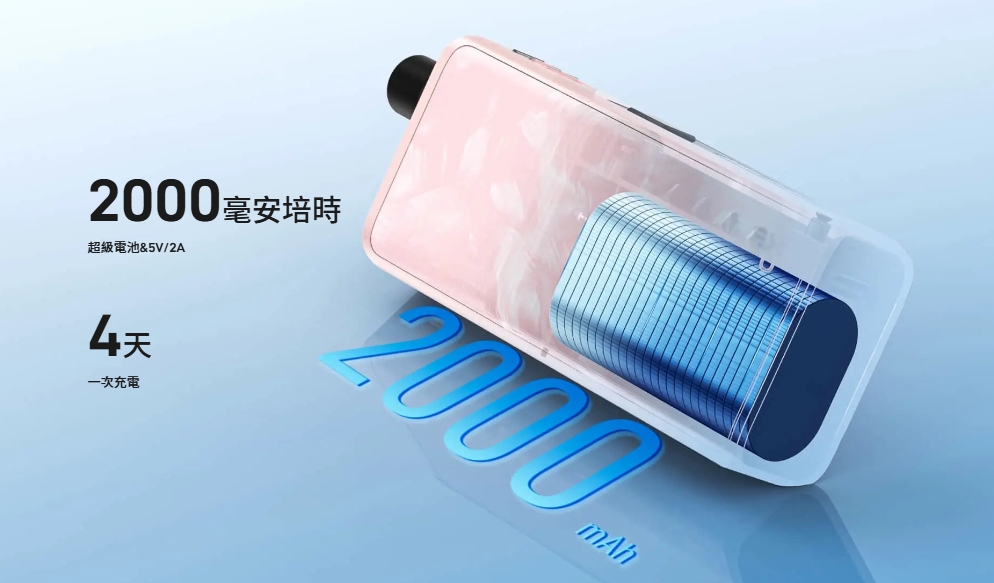 2000mAh內置充電電池,Apex 最多可提供四天不間斷吸電子煙一次充電