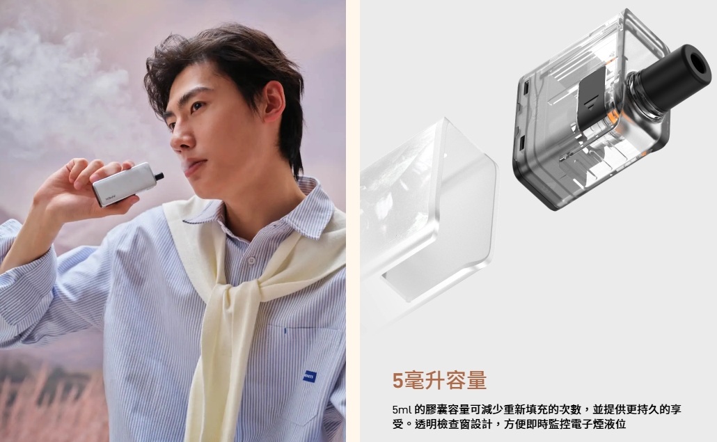 5ml的容量盡量減少頻繁填充的需要,讓您專注於電子煙體驗