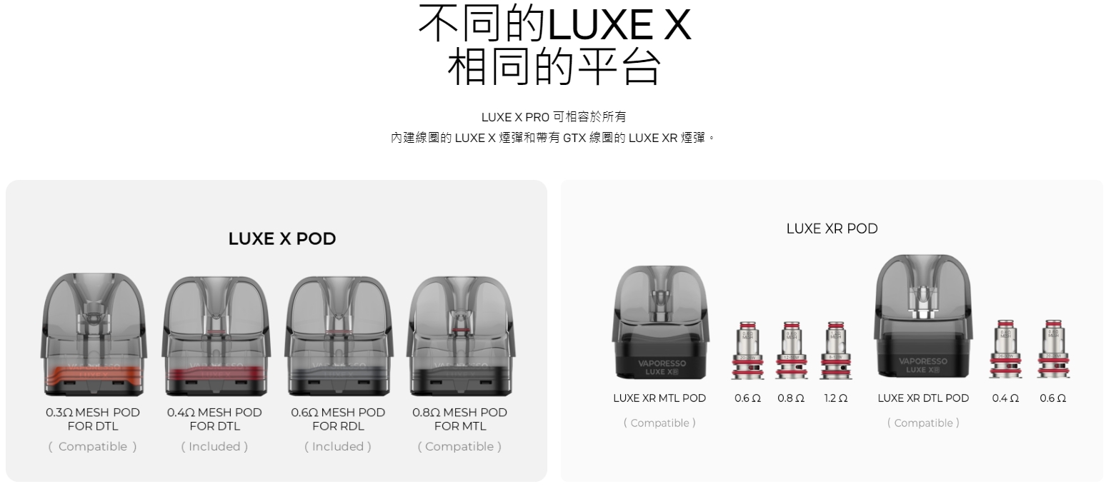 適用於 Luxe X 0.4Ω/0.8Ω 煙彈、Luxe XR RDL/MTL 煙彈、