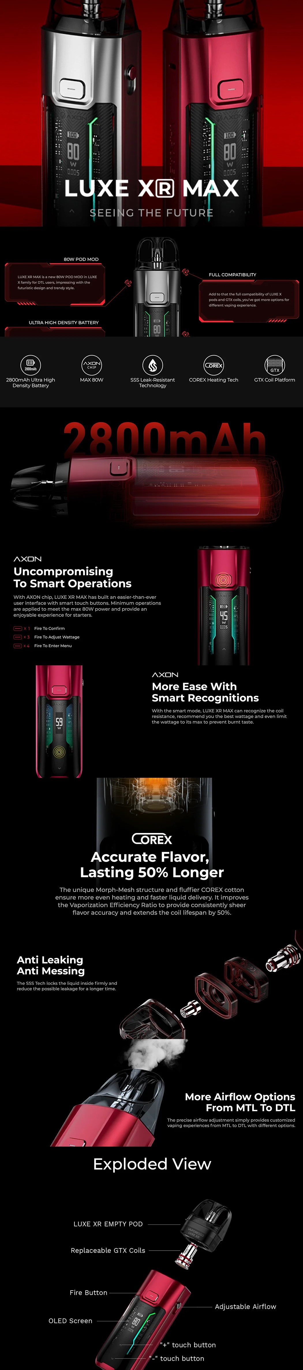完全相容於LUXE X/XR煙彈和GTX線圈,擁有更多選擇和彈性。