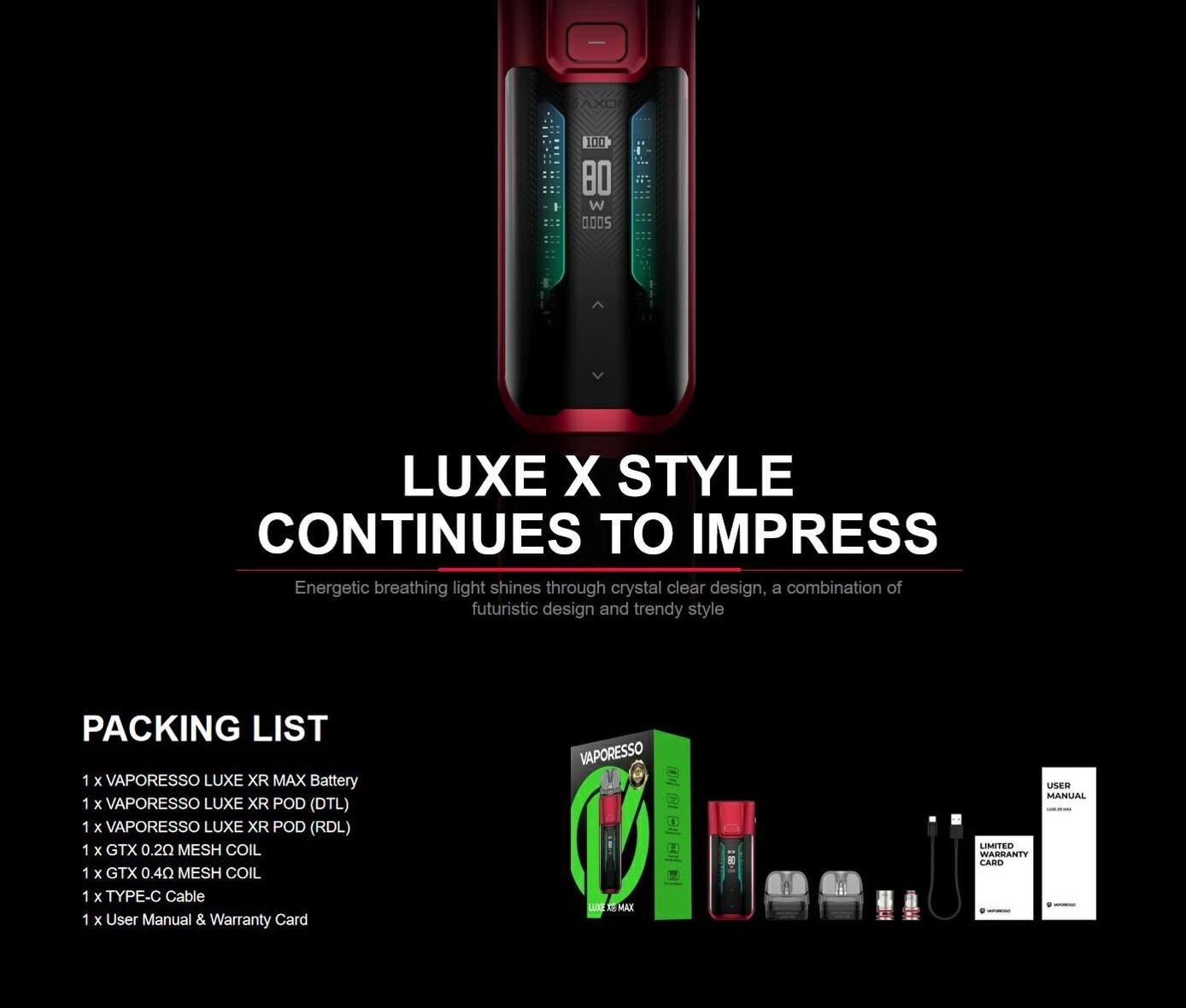 VAPORESSO Luxe XR MAX 設備 x1