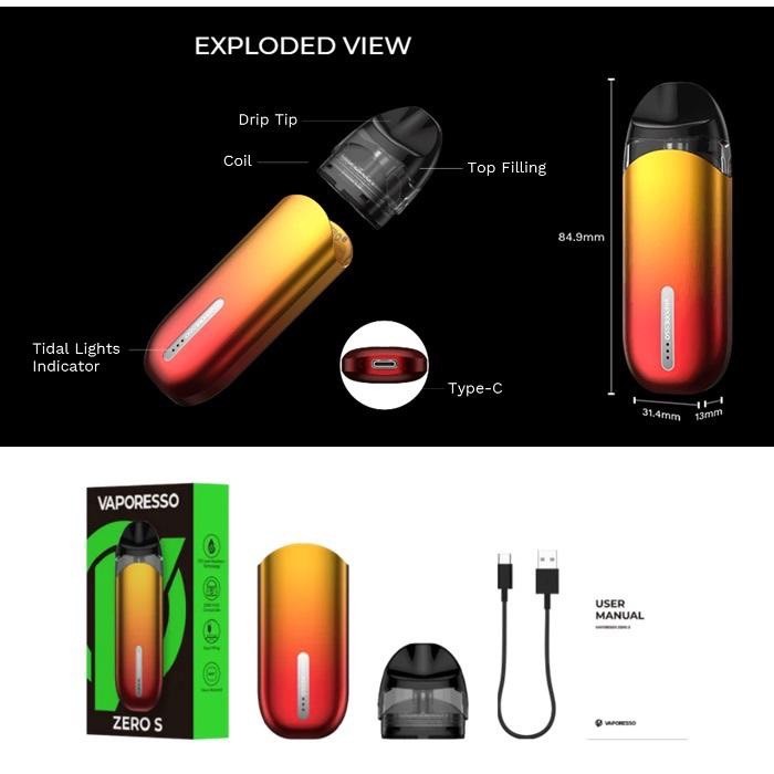 ZERO 2 與Zero S煙彈相容,煙彈容量為2mL,採用頂部填充系統,非常適合使用者的最喜愛的Salt-Nic Juice。