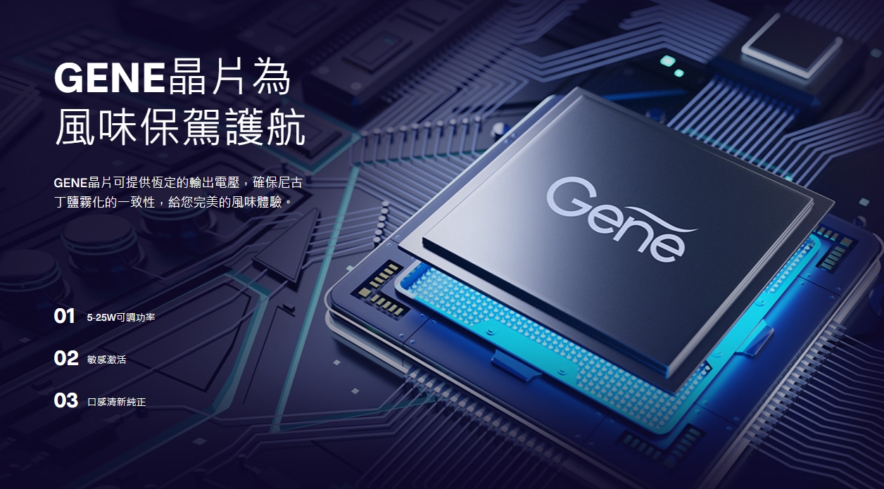 品牌核心技術 GENE.TT / GENE.FAN 晶片 提供超快點火速度與智能模式切換,讓使用者體驗從鹽油到大煙油的全面進化。配合原廠 PnP 卡匣或 TPP 霧化器,操作簡單、霧化穩定,廣受新手與進階用戶青睞。